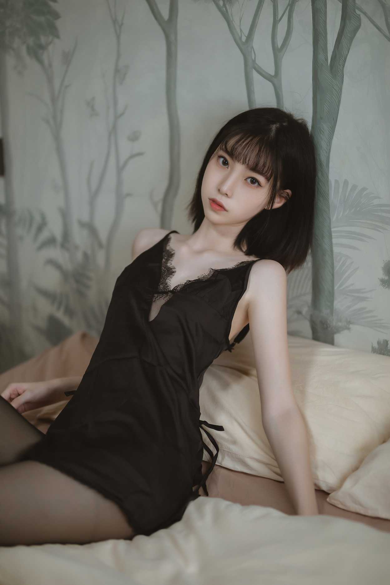 Cosplay 许岚LAN 黑色蕾丝睡衣