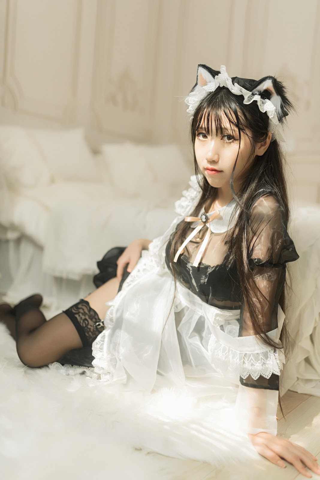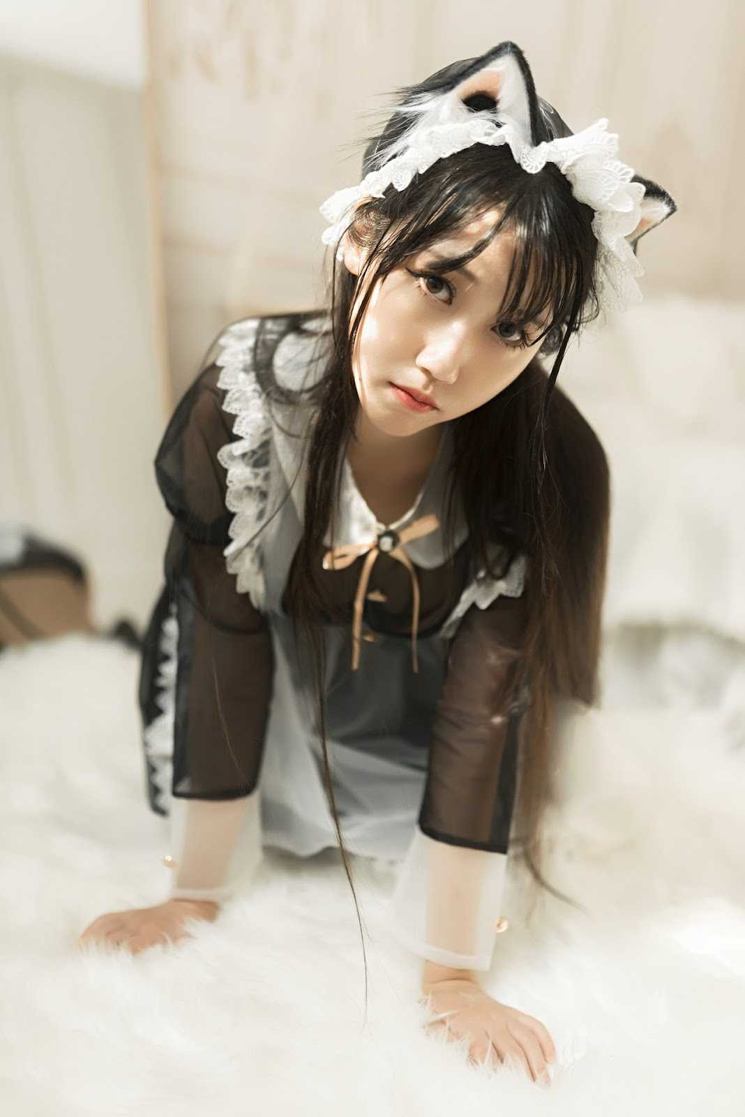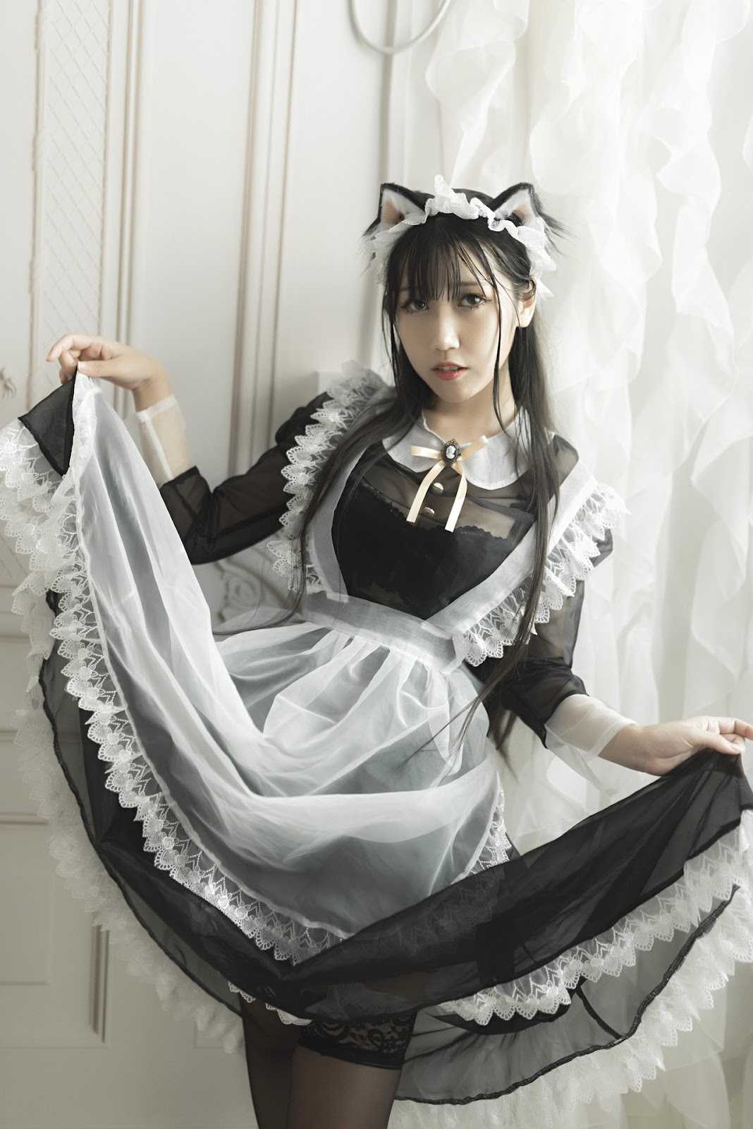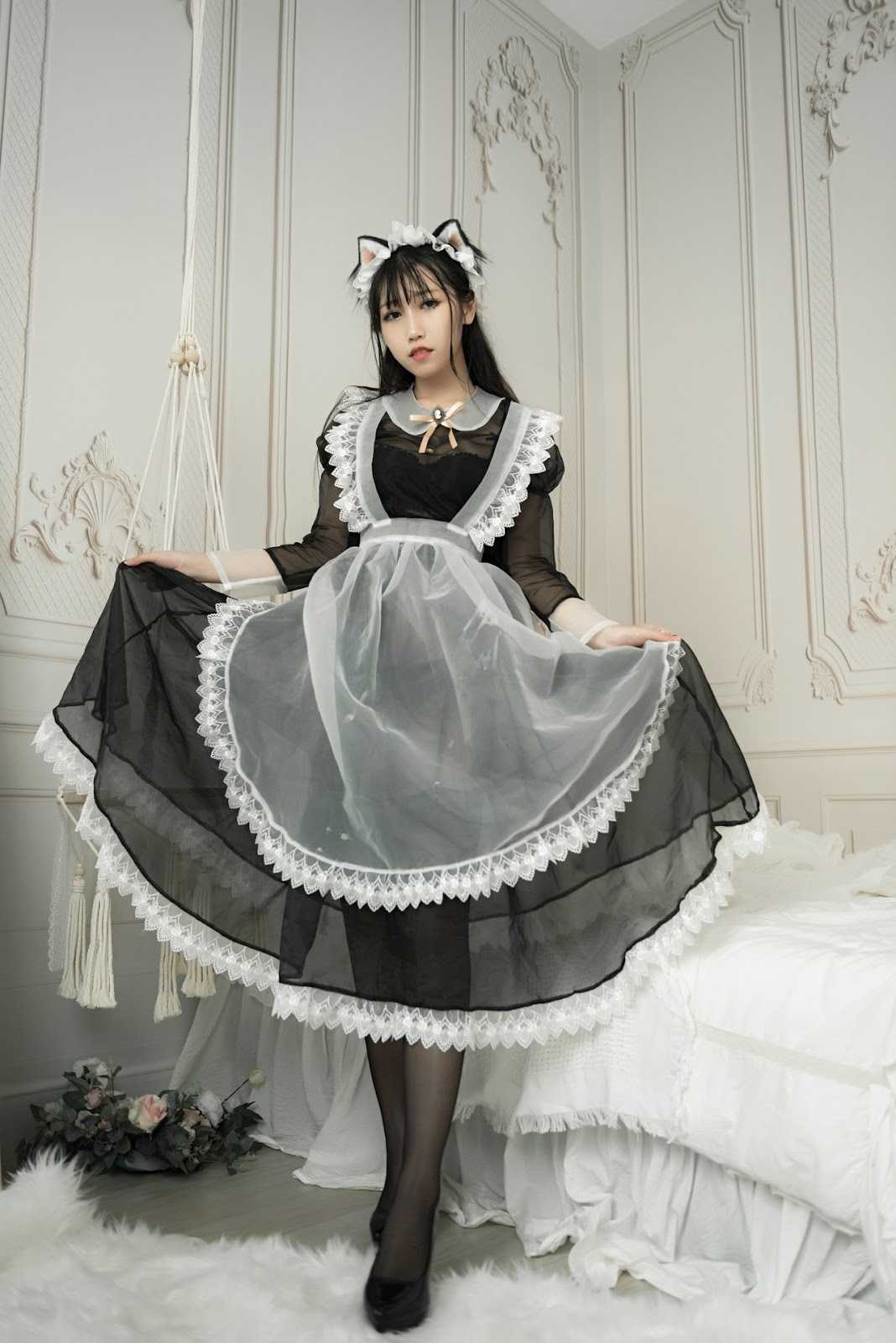 Cosplay 不呆猫 透明黑丝女仆